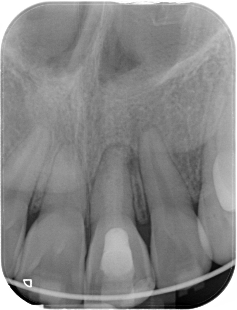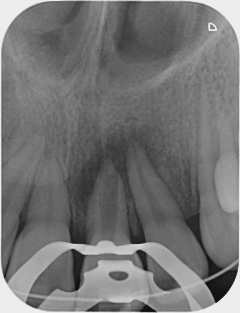 Apexification : Chez le jeune enfant, une dent immature victime d’un traumatisme ou d’une carie volumineuse peut poser problème. Si la pulpe agressée se nécrose, alors la racine ne s’édifie plus et une lésion inflammatoire se développe au niveau osseux. L’apexification, par apposition d’un matériau biocompatible dans la racine, cherche à induire la formation d’une barrière artificielle à l’extrémité de celle-ci, et permettre la cicatrisation de la lésion dans le but de maintenir la dent en bouche à long terme.