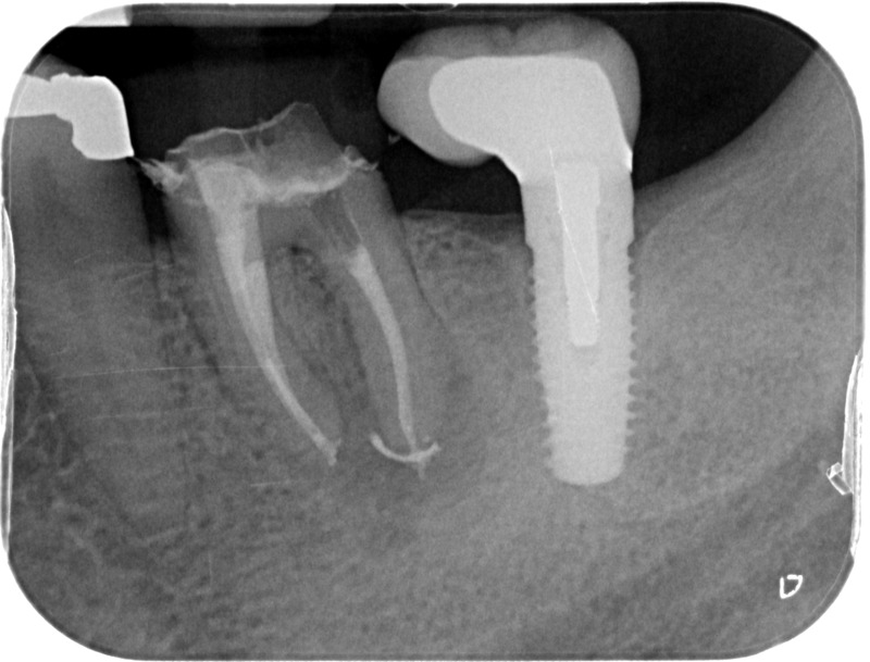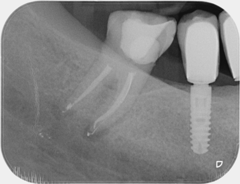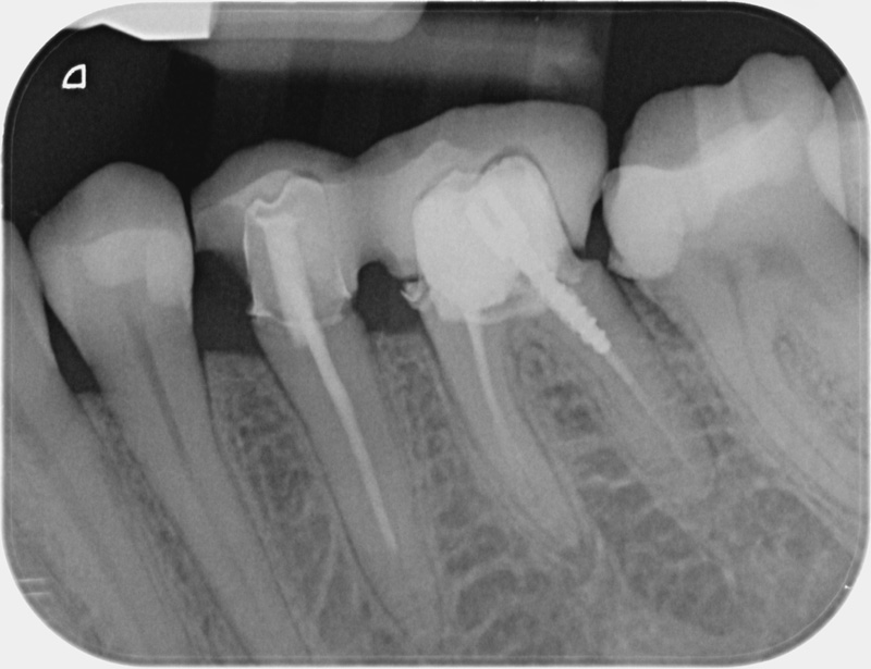 Reprise de traitement endodontique : La manœuvre consiste à retourner à l’intérieur des racines d’une dent déjà traitée. Il arrive occasionnellement qu’une nouvelle inflammation se déclare suite à une reprise de carie ou une fracture de la dent, ou si le premier traitement endodontique est incomplet. Après s’être assuré que la dent lésée était conservable, il convient de désinfecter de nouveau le réseau canalaire parfois très complexe. La nouvelle obturation des canaux devra être protégée aussi rapidement que possible pour éviter une éventuelle contamination bactérienne.