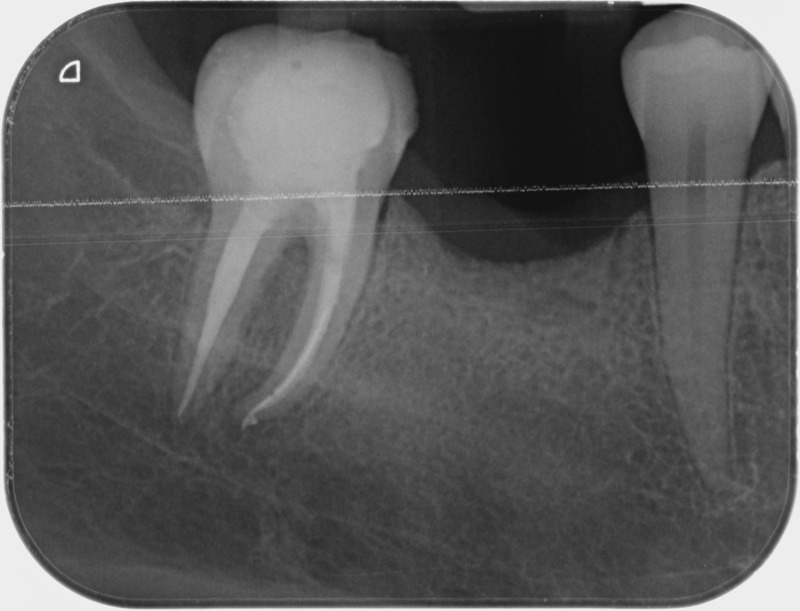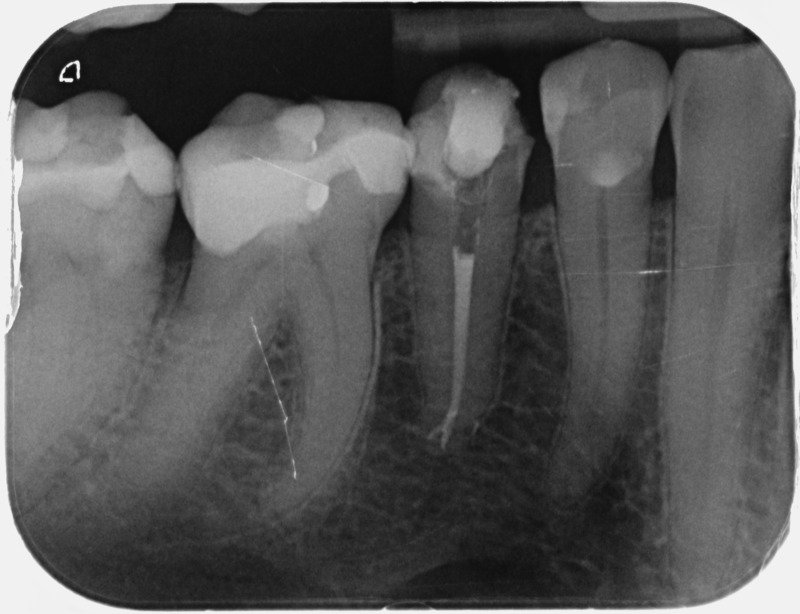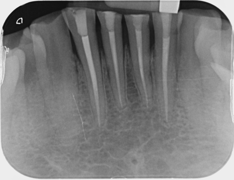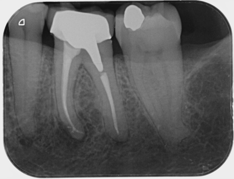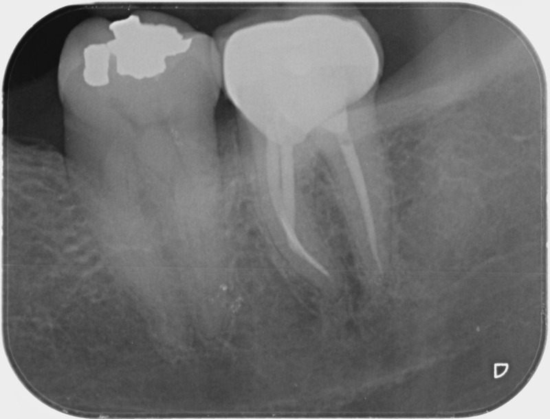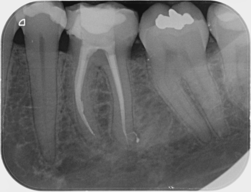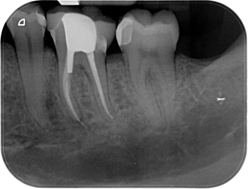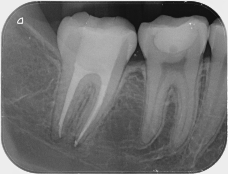 Traitement endodontique : Sous anesthésie locale et à travers la protection d’un champ opératoire nous accédons à la pulpe de la dent à soigner, puis aux canaux de ses racines que nous devons désinfecter. Ce soin nécessite l’élimination complète de la source de contamination (souvent la carie) parfois sous une ancienne reconstitution ou une couronne qu’il faut alors retirer. Une fois le nettoyage et la mise en forme des canaux réalisés, nous les obturons de façon hermétique avec un ciment et un matériau thermoplastique appelé Gutta Percha. Ceci afin d’empêcher une nouvelle prolifération bactérienne et d’assurer le maintien de la dent dans ses structures de soutien (ligament parodontal et os alvéolaire). L’ouverture effectuée au centre de la dent sera d’abord refermée avec un pansement provisoire avant d’envisager ensemble la reconstitution d’usage : un composite, un inlay-onlay ou une couronne.